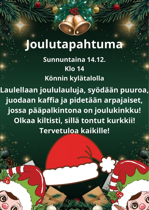 Puuroa ja joululauluja Könnin kylätalolla su 14.12.2025
