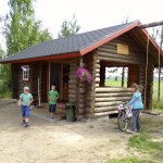 Kyläseuran kökällä ja lahjapuutavaralla rakennettu kioski on sitten virallisesti avattu! Siitä isoo käsi kaikille lahjoittajille ja kökkäläisille.